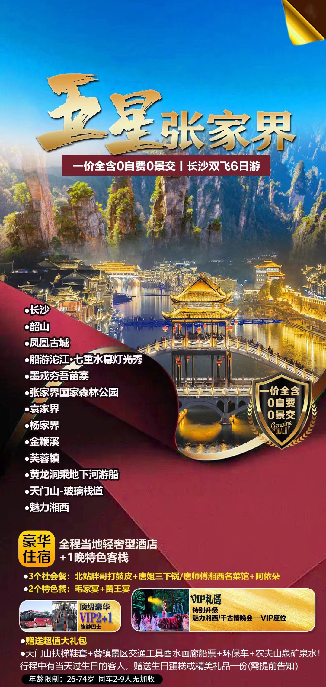 【五星張家界】魅力湘西土家文化張家界6日游
